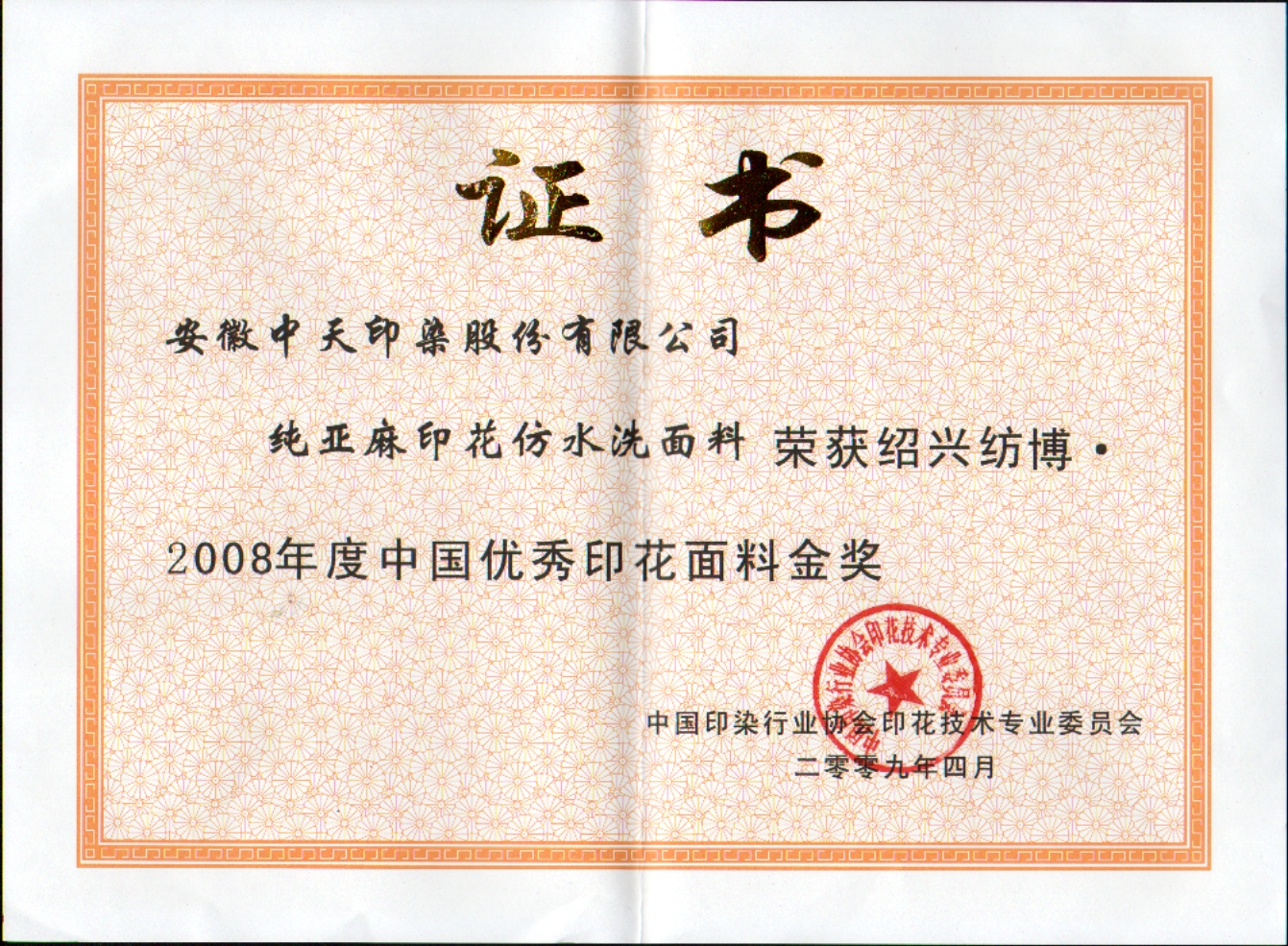 純亞麻印花防水洗面料榮獲中國優秀印花面料金獎